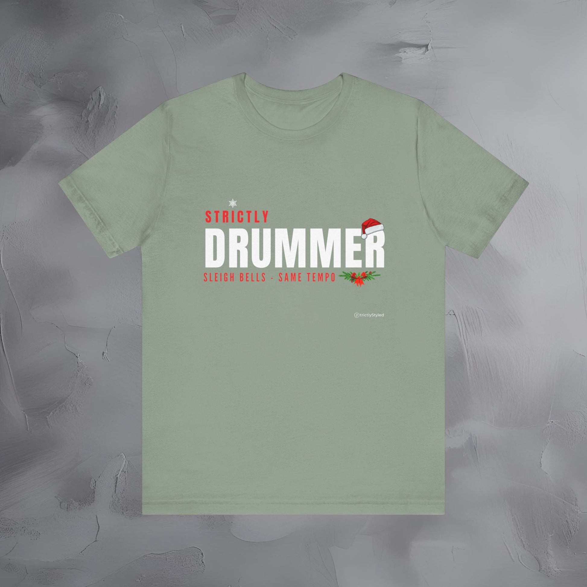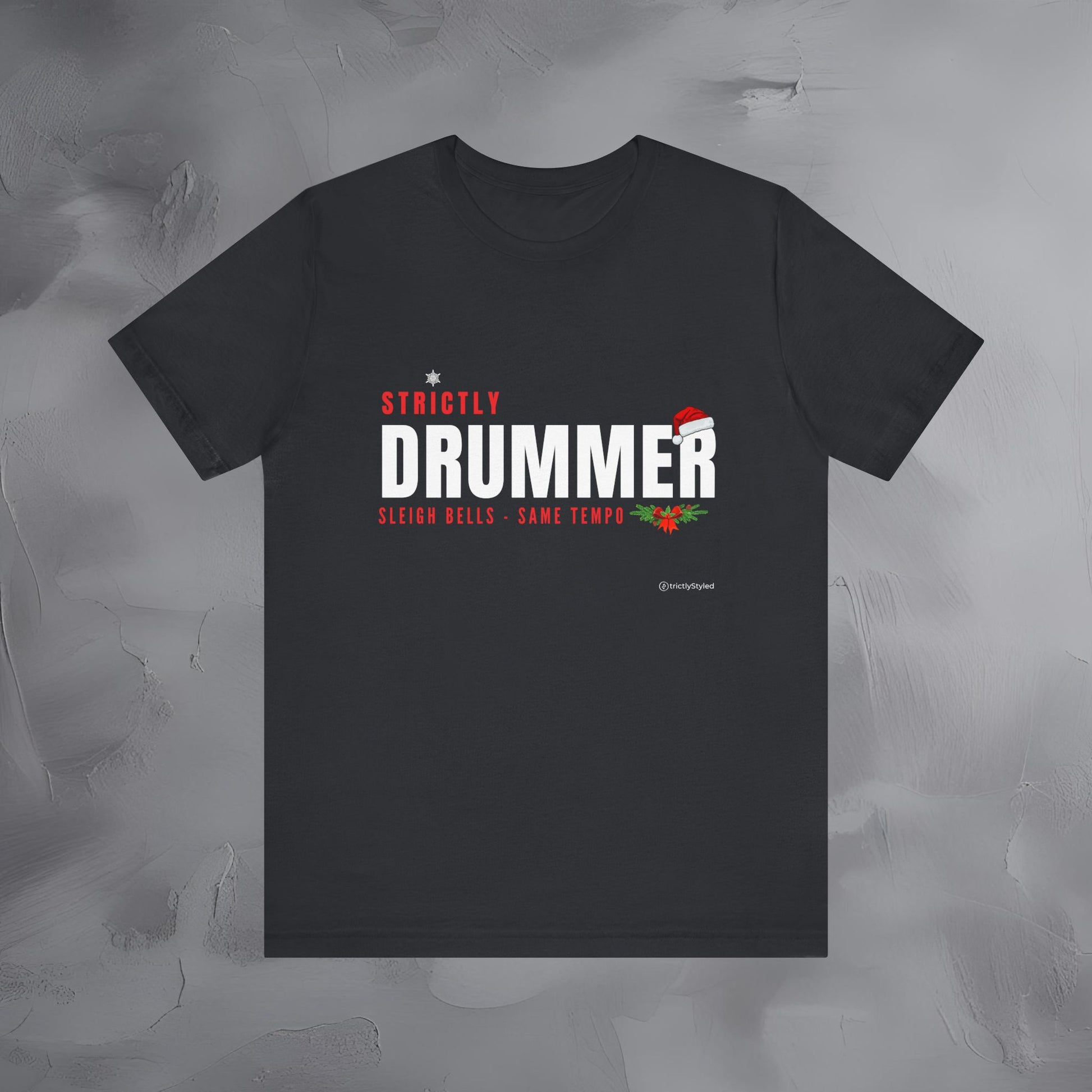 The Strictly Drummer – Sleigh Bells • Same Tempo tee brings festive humor to the stage with a clean, modern Strictly layout designed specifically for percussionists.
