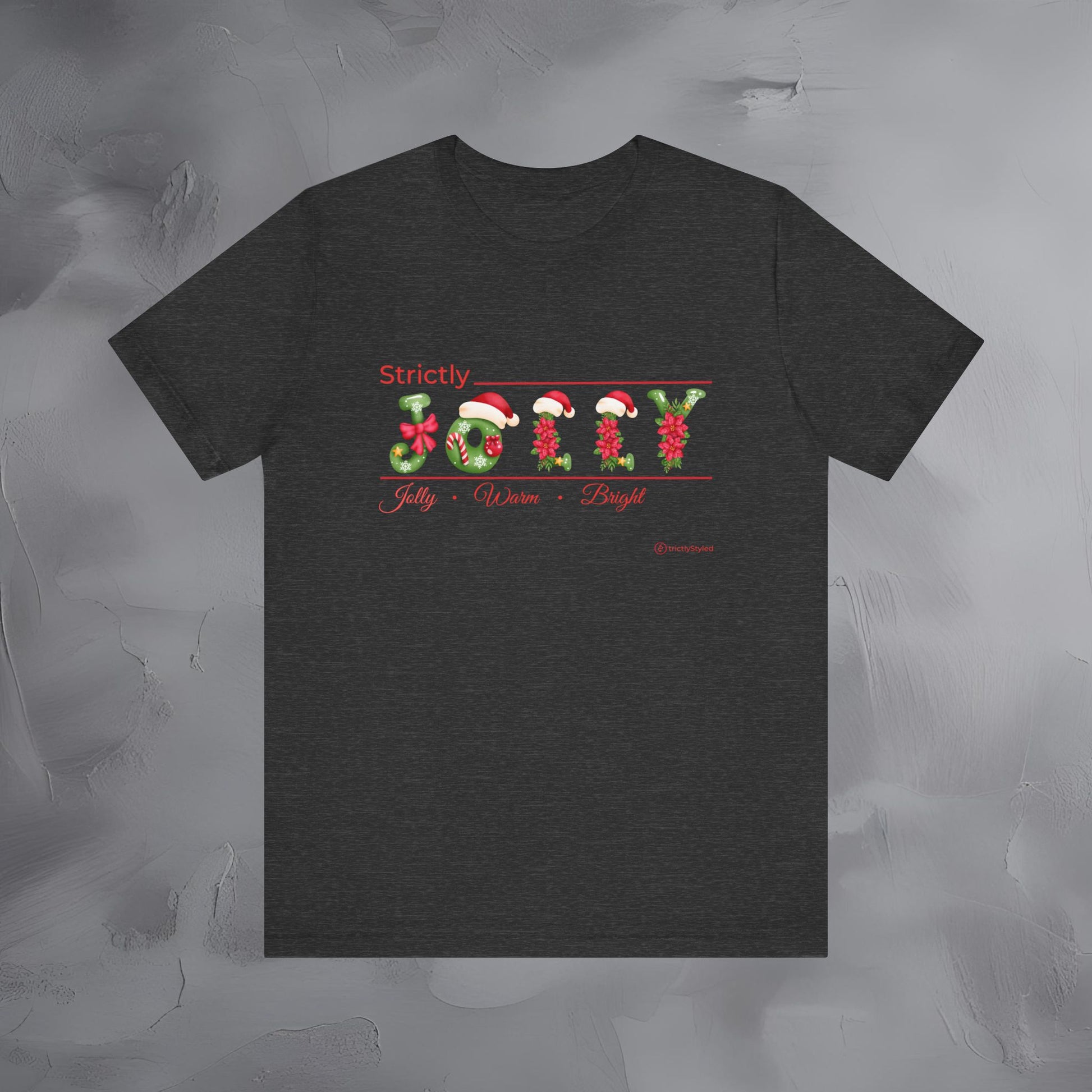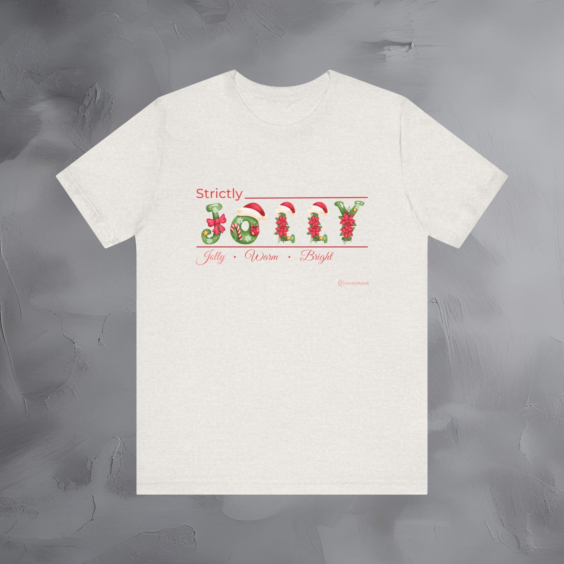 Soft, simple, and full of holiday cheer — the Strictly Jolly – Jolly • Warm • Bright tee brings a clean, modern twist to classic Christmas vibes. This design keeps things elegant and understated while still delivering that warm, festive feeling everyone loves.
