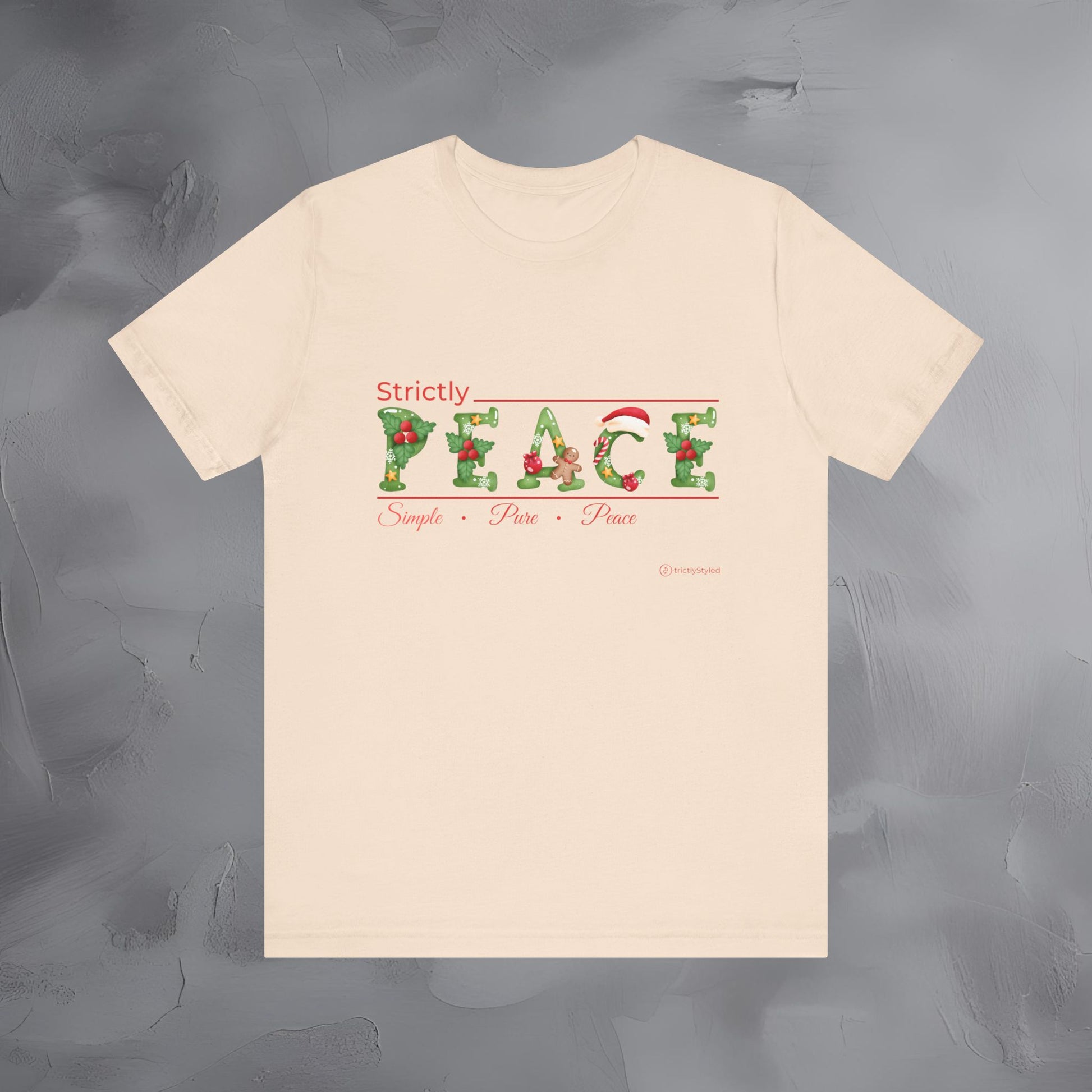 Soft, centered, and serene — the Strictly Peace – Simple • Pure • Peace tee captures the quiet beauty of the season in a clean, modern design.