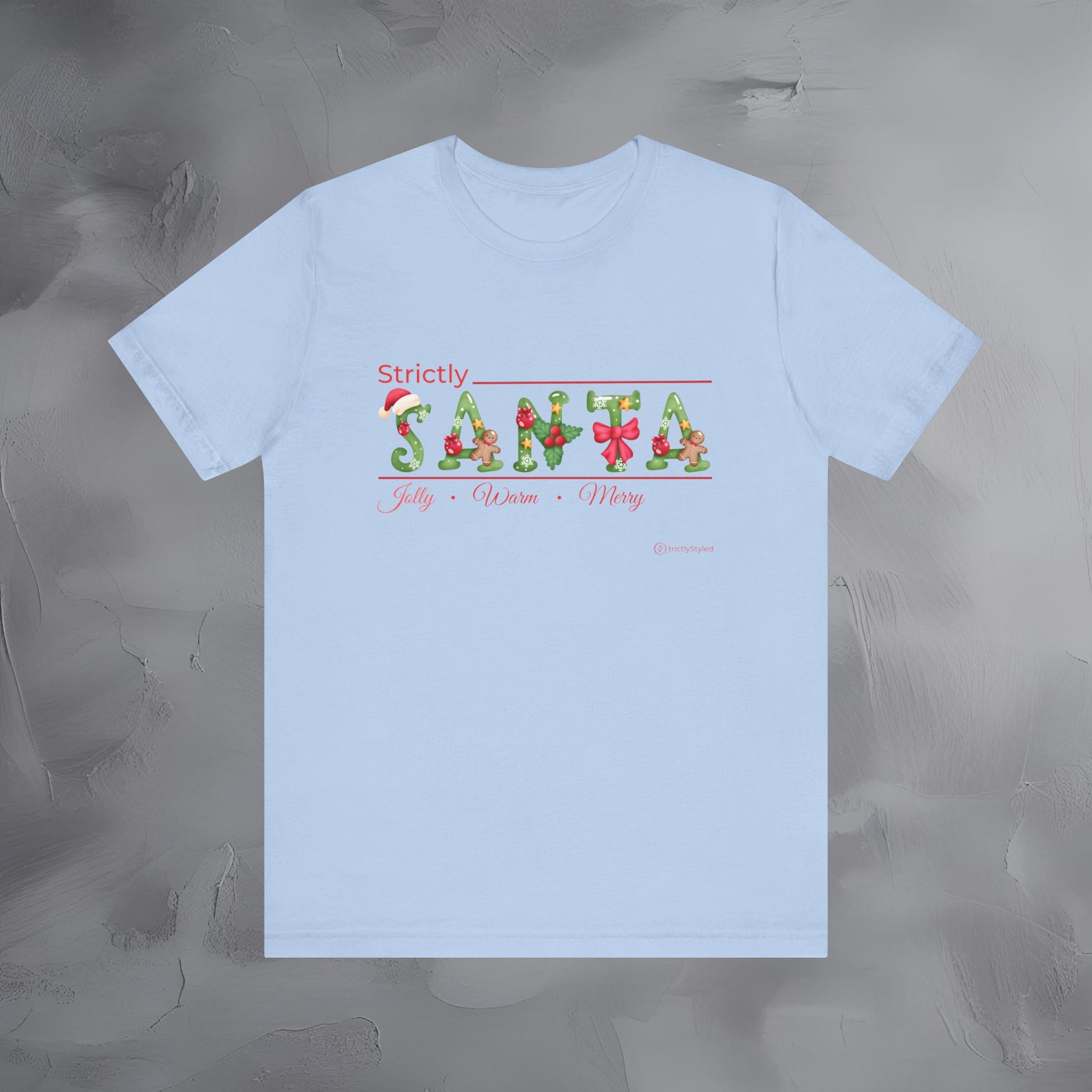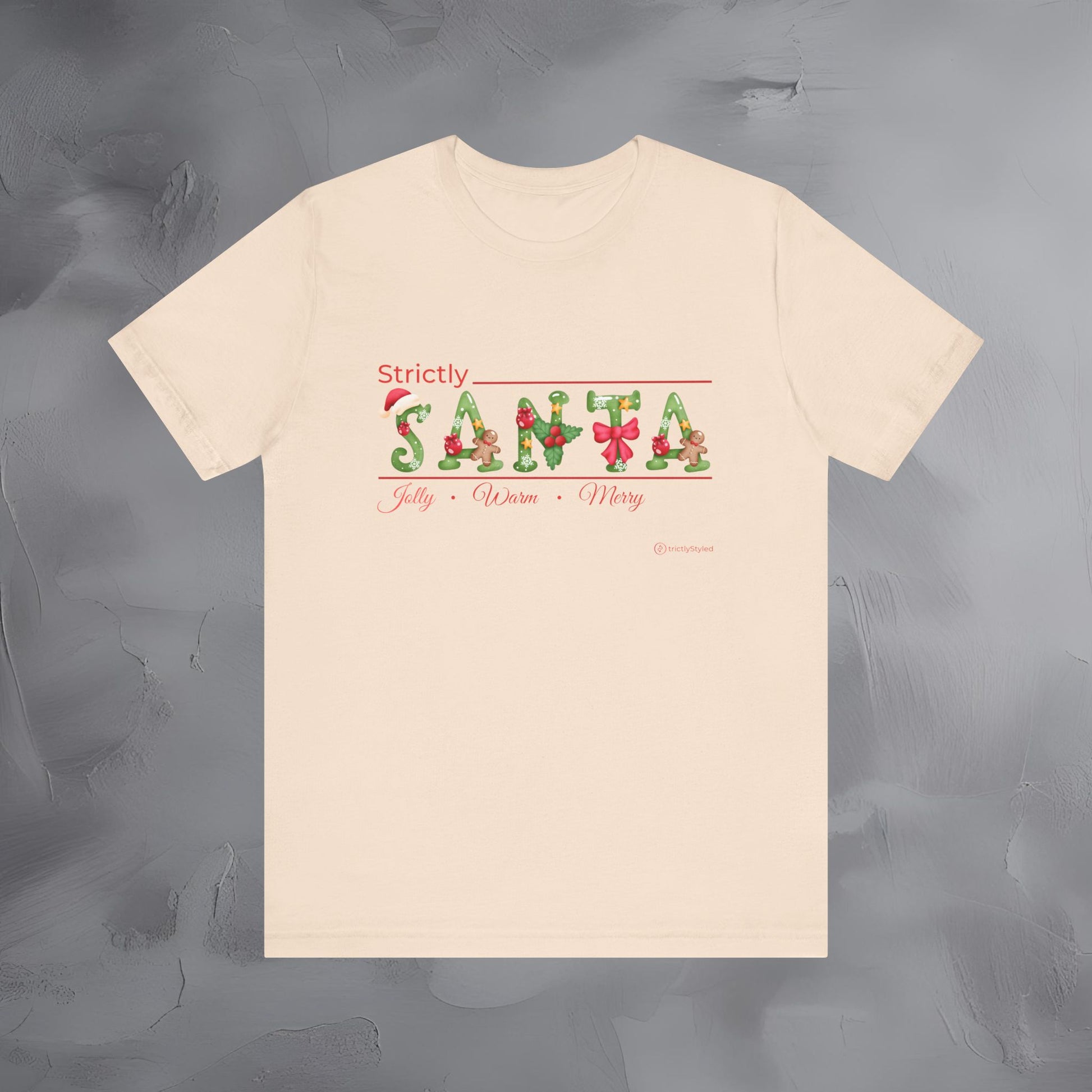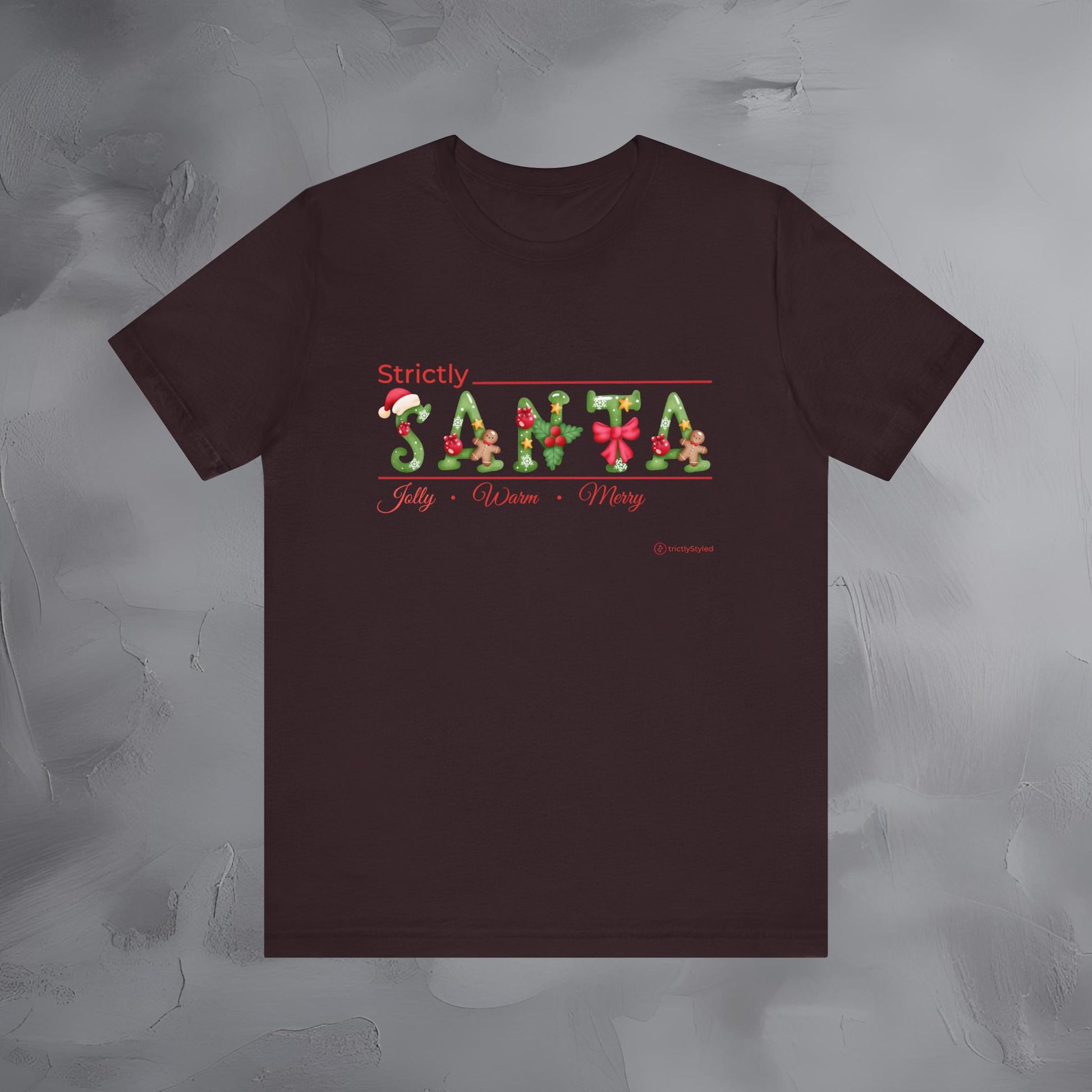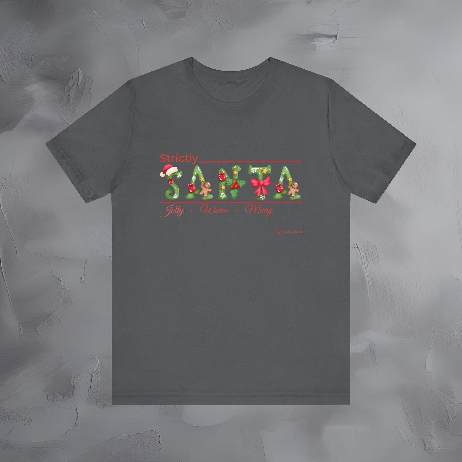 sBring the warm, joyful spirit of the season to life with the Strictly Santa – Jolly • Warm • Merry tee.