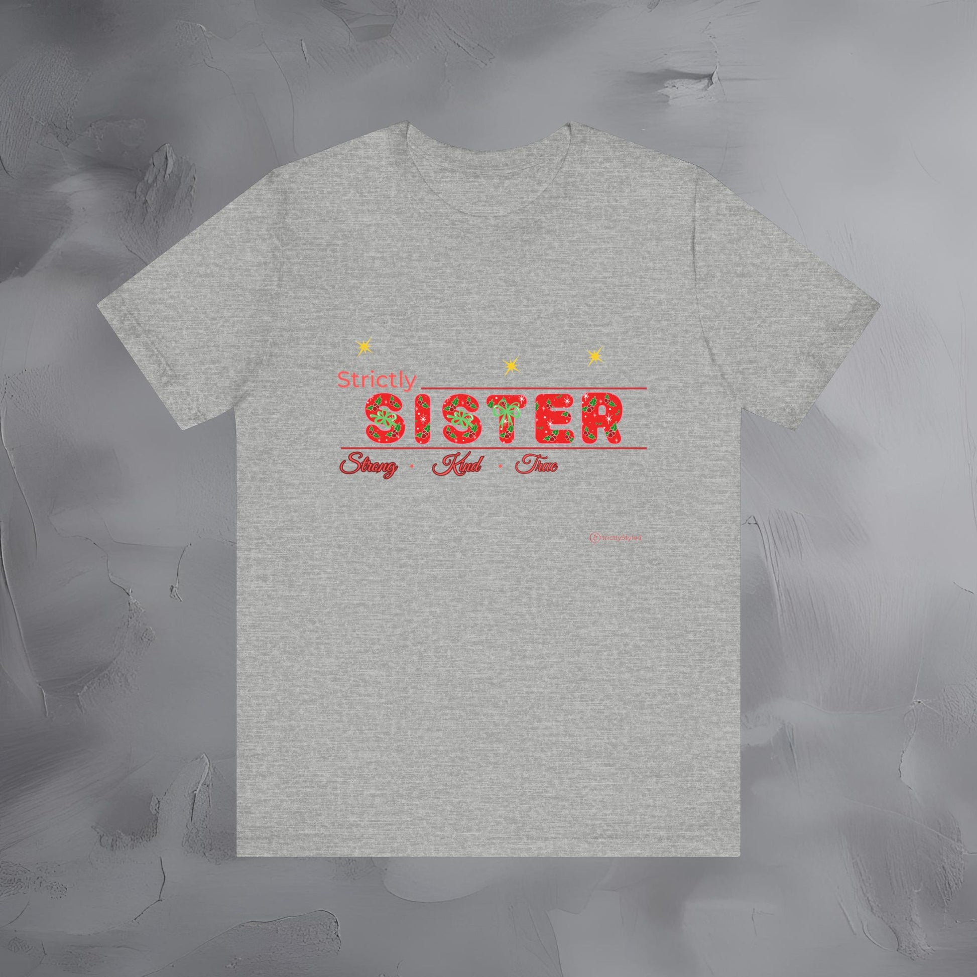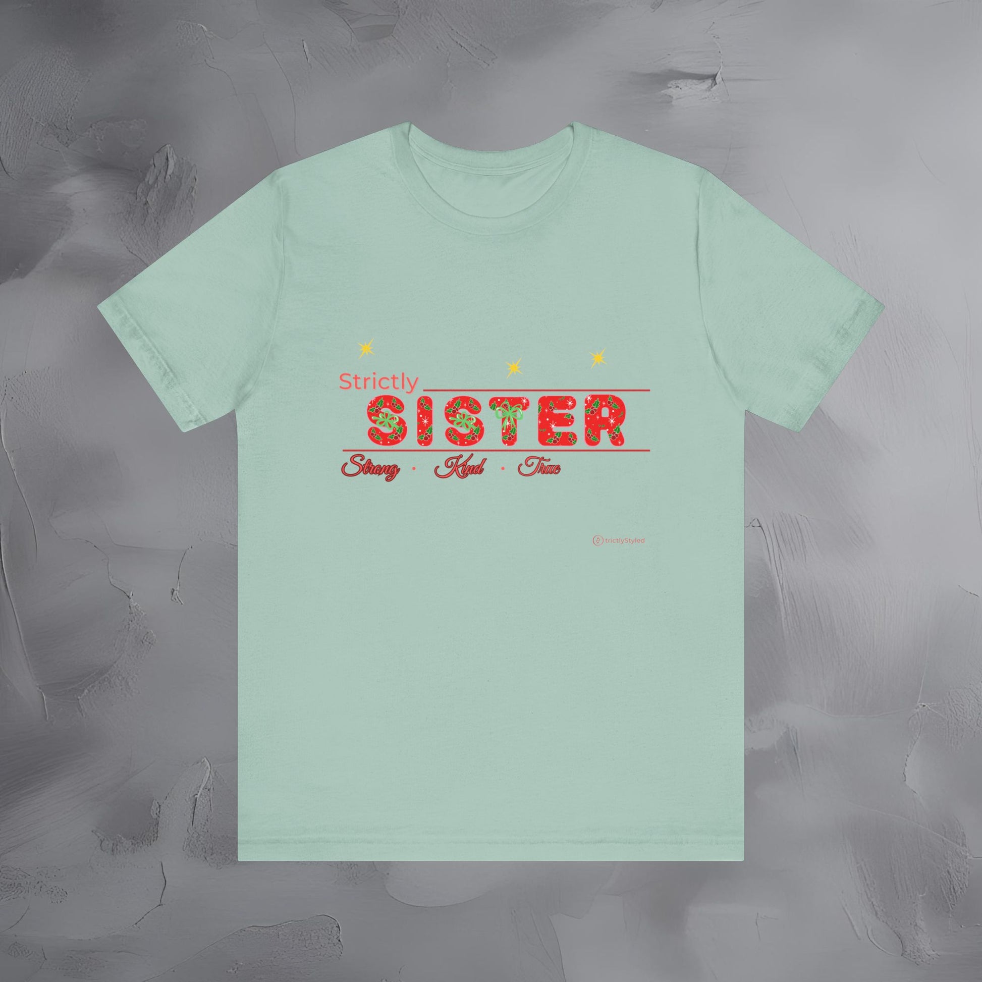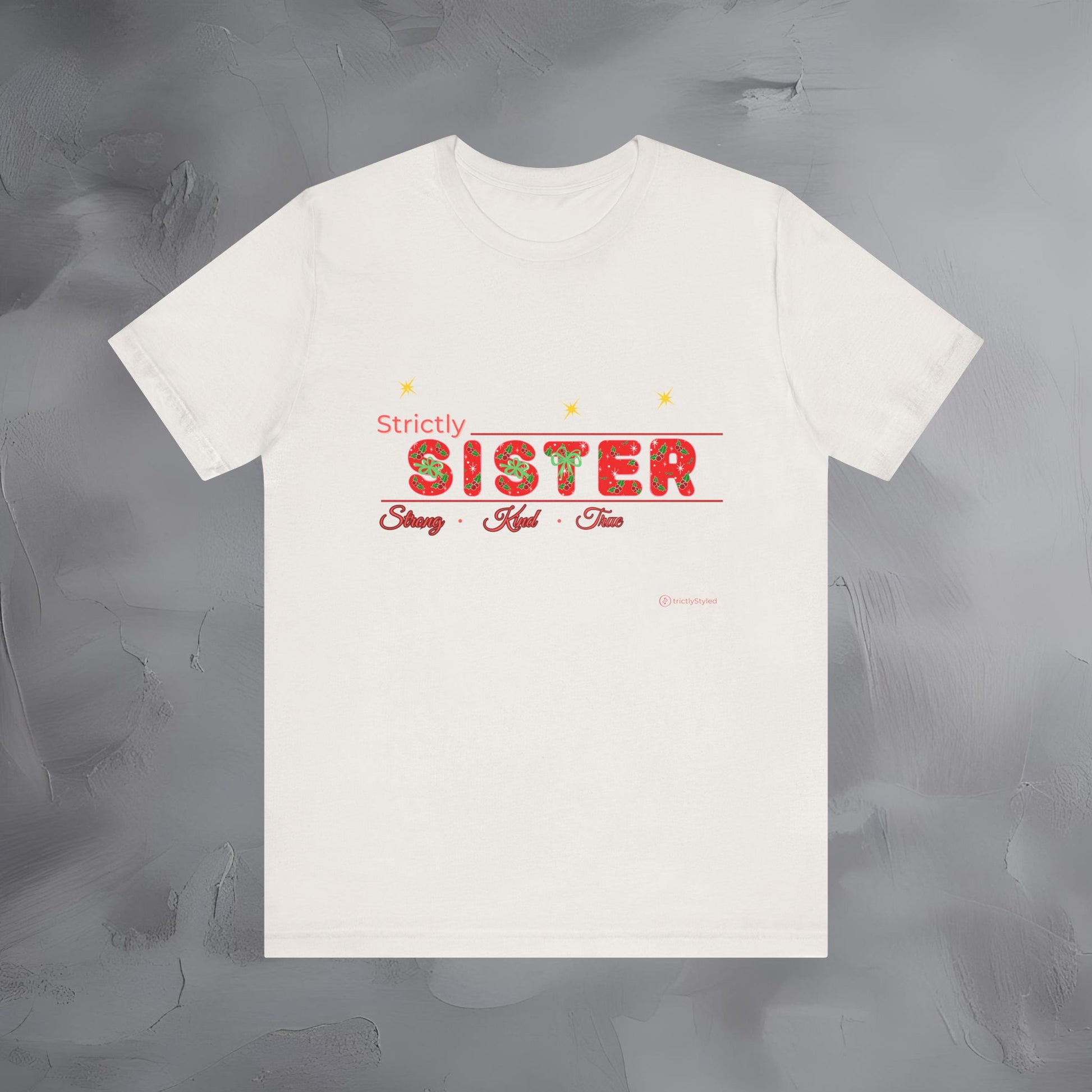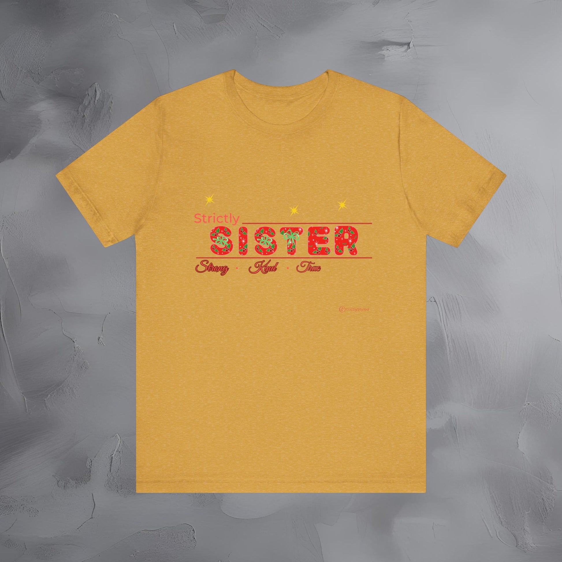 Strictly Sister celebrates the strength, kindness, and genuine heart that make a sister unforgettable. This design reflects her steady support, her warm presence, and the honesty she brings into every connection. Clean, modern, and beautifully simple, it highlights the qualities that define sisterhood at its best.